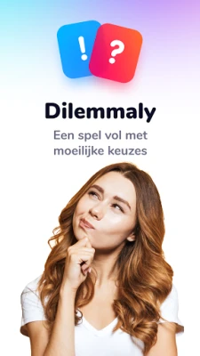 Dilemmaly is de ultieme 'Zou je liever?' app. Geniet met vrienden en familie van duizenden uitdagende en hilarische dilemma's. Vergelijk jouw keuzes met miljoenen spelers. Urenlang interactief plezier gegarandeerd!