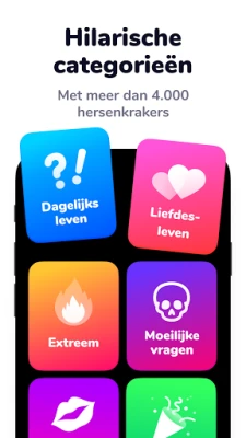 De reis door Dilemmaly stopt nooit, want de app evolueert constant. Breid je speelplezier verder uit door nieuwe categorieën te ontgrendelen en zo nog meer frisse dilemma's toe te voegen aan je repertoire. Maar de ware kracht ligt in jouw creativiteit: met de unieke functie voor aangepaste kaarten ben je vrij om je eigen 'Zou je liever'-vragen te bedenken. Creëer persoonlijke en unieke dilemma's die perfect aansluiten bij jou, je vrienden en familie, en garandeer eindeloos speelplezier. Dilemmaly overstijgt het traditionele 'Zou je liever'-spel; het transformeert het in een levendige, interactieve ervaring die garant staat voor urenlang vermaak en onvergetelijke momenten.