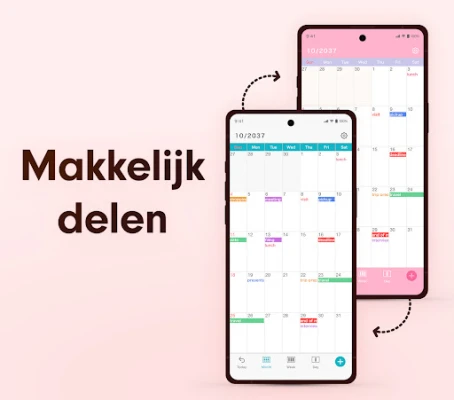 Verbind moeiteloos met anderen door de ingebouwde deelfunctionaliteit. Synchroniseer je planning met collega's voor teamprojecten, deel gezinsactiviteiten zodat iedereen op de hoogte is, of plan gezamenlijke momenten met dierbaren. Eenvoudige Agenda integreert naadloos met je bestaande digitale omgeving, inclusief Google Agenda, Outlook, iCloud en andere platforms. Bovendien personaliseer je de app met een keuze uit twintig themakleuren en geniet je van handige widgets voor directe toegang tot je planning, alles desgewenst beveiligd met een toegangscode voor extra privacy.