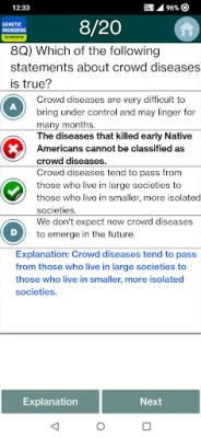 De complexe wereld van genetica vereist grondige kennis en voorbereiding, vooral wanneer een belangrijk examen nadert. Om u optimaal uit te rusten, biedt Genetics Quiz Questions Free een ongeëvenaarde bron van oefenmateriaal. Deze applicatie is zorgvuldig samengesteld om uw begrip van erfelijke patronen, moleculaire structuren en genetische principes te versterken. Duik in een uitgebreide verzameling van meer dan 2500 meerkeuzevragen, elk ontworpen om uw kennis te testen en uw vaardigheden te verfijnen, zodat u met vertrouwen uw genetica-examen tegemoet kunt treden.