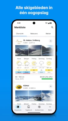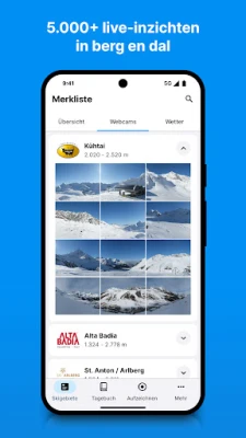 Ontdek de meest actuele sneeuwhoogtes en de status van geopende pistes, dagelijks geactualiseerd om u van de meest recente informatie te voorzien. Een gedetailleerde negendaagse weersvoorspelling voor het alpengebied helpt u vooruit te plannen, aangevuld met gespecialiseerde sneeuwvoorspellingskaarten. Visualiseer de pistes en het weer met toegang tot duizenden webcams, inclusief honderden live videostreams, en verken elk resort met hoge-resolutie pistekaarten. Van skiverhuur tot accommodaties en inzicht in skiticketprijzen; de app van bergfex biedt alle essentiële details binnen handbereik, inclusief een cruciale lawinerisicodienst voor uw veiligheid.