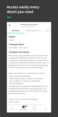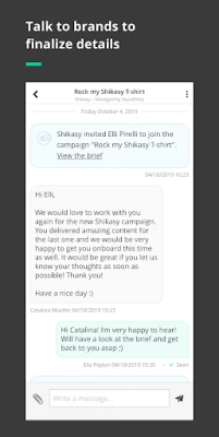 Ontdek moeiteloos nieuwe mogelijkheden door direct campagnedeals te ontvangen. Elke aanbieding komt compleet met gedetailleerde briefings, zodat je precies weet wat er van je verwacht wordt en jouw creativiteit optimaal kunt benutten. Heb je vragen of wil je onderhandelen over de voorwaarden? De ingebouwde messenger stelt je in staat om real-time te communiceren met merken, waardoor transparantie en helderheid van meet af aan gewaarborgd zijn. Accepteer of wijs voorstellen eenvoudig af, alles vanuit één centrale interface.