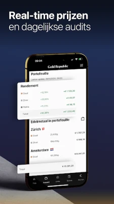 Ontdek de essentie van de edelmetaalmarkt met GoldRepublic Mobile. Deze geavanceerde applicatie brengt de actuele waarden van goud, zilver en platina rechtstreeks naar uw scherm, gepresenteerd in een heldere en intuïtieve omgeving. Volg moeiteloos de dagelijkse fluctuaties en procentuele veranderingen dankzij gedetailleerde prijsgrafieken die u een direct inzicht bieden in de dynamiek van de markt. Blijf voorop en maak weloverwogen keuzes met actuele informatie binnen handbereik.