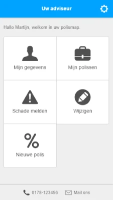 Stroomlijn uw verzekeringszaken met Polismap. Deze intuïtieve applicatie biedt u een helder overzicht van de afspraken die uw adviseur, in nauw overleg met u, heeft gemaakt om uw risico's optimaal af te dekken. Via Polismap blijft u altijd verbonden met uw adviseur en kunt u moeiteloos belangrijke wijzigingen in uw persoonlijke situatie of bezittingen doorgeven. Ook het melden van een schadegeval wordt hiermee aanzienlijk vereenvoudigd, alles vanuit één centrale plek.