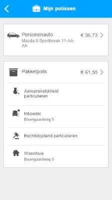 Beheer uw verzekeringen eenvoudig met Polismap. Krijg inzicht in uw polissen, voorwaarden en afgedekte risico's. Geef wijzigingen door, meld schades inclusief foto's, en beheer uw gegevens. Uw groene kaart altijd bij de hand, zelfs offline.