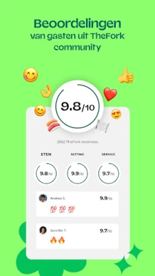 Of u nu verlangt naar een uitgebreide brunch, de beste taco's in de stad zoekt, of dineert op Michelin-niveau, TheFork biedt een ongeëvenaarde selectie van meer dan 60.000 restaurants. Blader door duizenden foto's, gedetailleerde menu's en actuele beoordelingen die aansluiten bij elke voorkeur en gelegenheid. Voor de fijnproevers die de top van de gastronomie zoeken, presenteert onze INSIDER-collectie handgekozen etablissementen, gewaardeerd om hun superieure ambiance, service en culinaire excellentie. En omdat wij loyaliteit waarderen, spaart u bij elke boeking via TheFork waardevolle Yums. Deze punten kunt u inwisselen voor aantrekkelijke kortingen, zoals €20 voor 1.000 Yums of €50 voor 2.000 Yums, bij deelnemende restaurants. Houd acties voor extra Yums in de gaten!